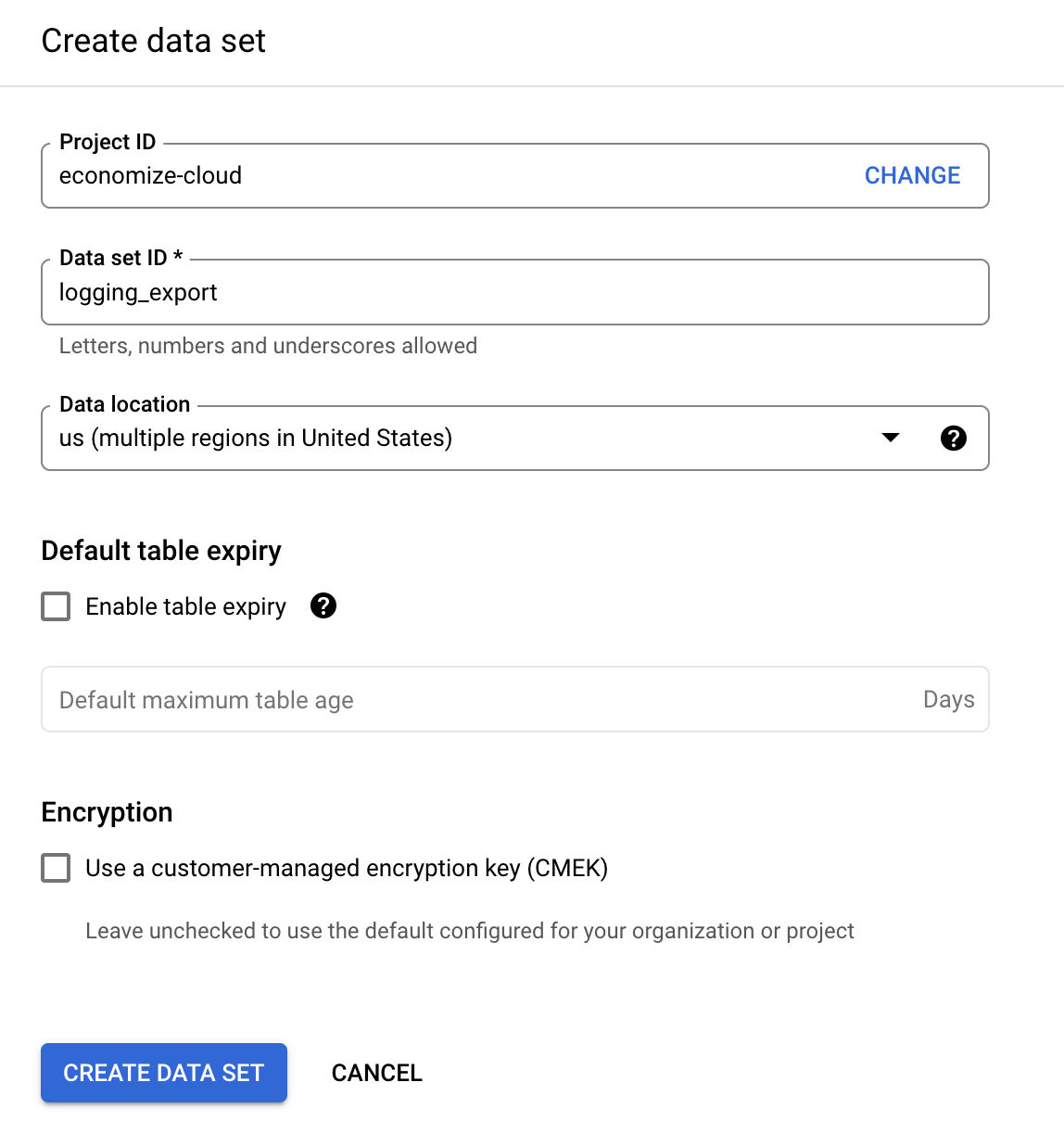 Navigate to the BigQuery console to create a new dataset named logging_export in the same project where you created the billing export dataset during onboarding.